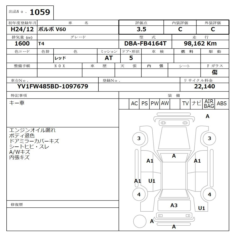 Volvo V60, 2012 года - Лот№1059 ★3.5