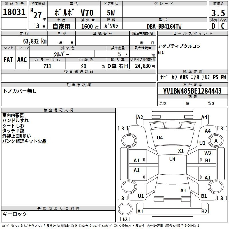 Volvo V70, 2015 года - Лот№18031 ★3.5