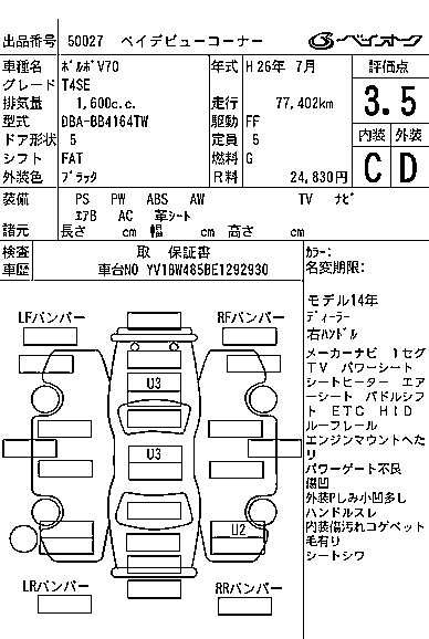 Volvo V70, 2014 года - Лот№50027 ★3.5